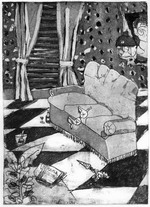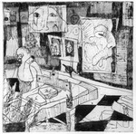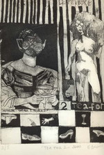 Munie d’une solide formation classique, Elisabeth Bronitz, artiste bruxelloise, débuta sa vie de plasticienne par l’exploitation rigoureuse du visage humain dans ce qu’il a de plus expressif et touchant, le visage vieilli par la vie, étudié sans relâche et projeté sur le papier en de larges et rapides touches colorées dont l’instinctivité nous permet d’entrevoir l’âme du modèle ou peut-être même celle de l’artiste. Son travail, tourné vers l’individu, s’attache aujourd’hui à l’intimité de celui-ci, le personnage est quasi absent ou donne une information complémentaire sur la composition. D’abord réalisée à l’eau-forte et ensuite à la peinture et au marqueur sur toile, ses « scénographies » enferment de multiples références à la culture (peinture, design,…) tout en évoquant une présence vivante (désordre) ; Tant dans ses gravures (eau-forte, lino) que dans ses peintures, Elisabeth Bronitz nous brosse le portrait d’un monde coloré et faussement naïf dans lequel la réalité de l’autre passe par le filtre de son imaginaire. Elisabeth Bronitz anime aujourd’hui des ateliers créatifs basés sur l’histoire de l’art et enseigne en Académie.